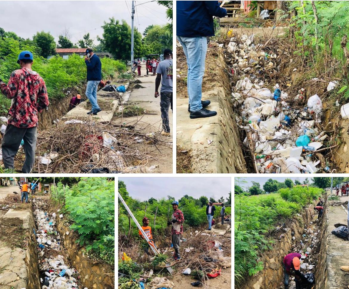 Temprano en las calles con brigadas del ayuntamiento, quitando un entaponamiento de basura de la cañada de la calle Mella. Esto es lo que ocurre cuando los ciudadanos ignoran sus deberes y deciden lanzar los desechos sólidos a las calles cuando llueve.
