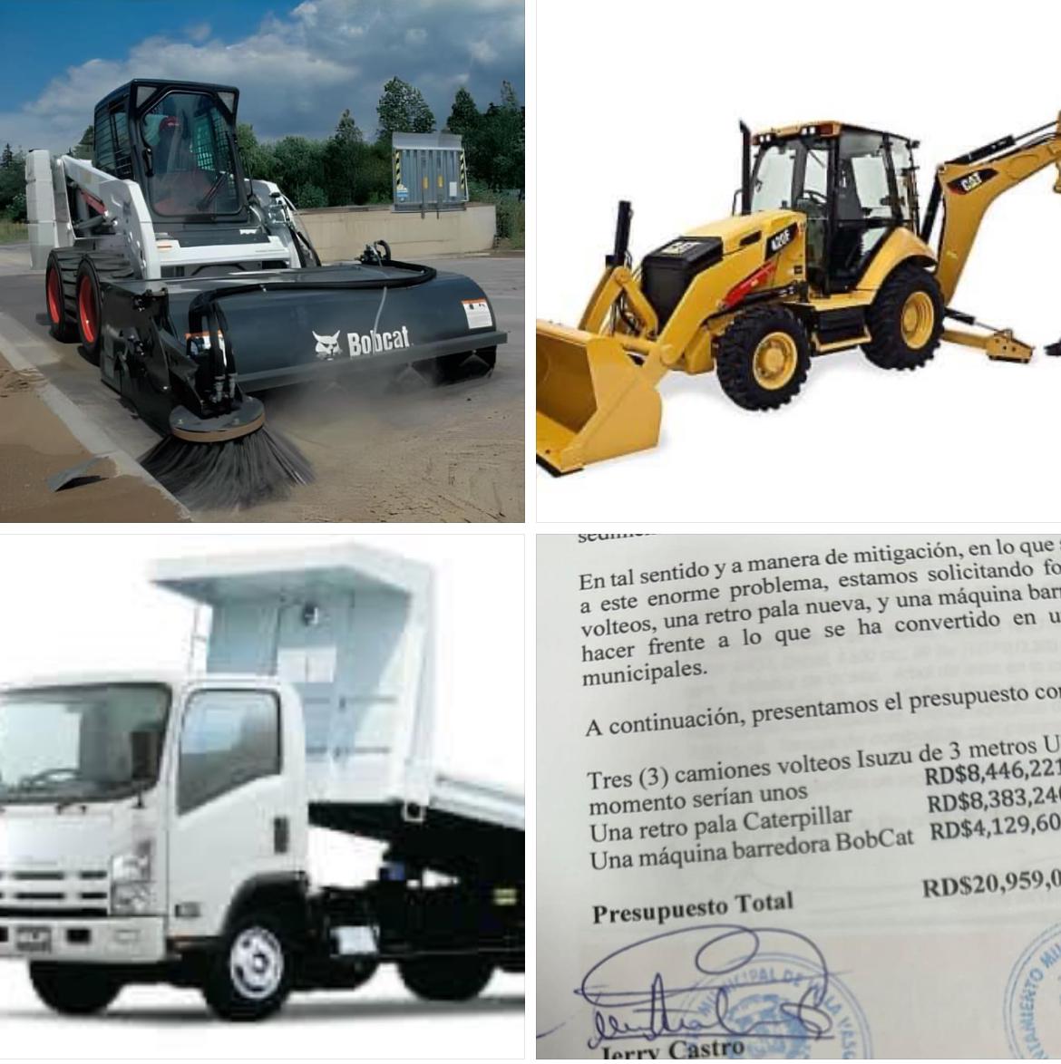 Anunciamos con mucha alegría a toda la población, que en los próximos días estaremos adquiriendo 3 volteos Isuzu Nuevos, una retro pala nueva y una máquina barredora de calle BobCat con su cajón. Estos equipos los había solicitado hace unos dos meses al presidente Luis Abinader, mediante una visita realizada Ministro Administrativo de la presidencia Andrés Bautista, junto a la gobernadora Nelsy Cruz.